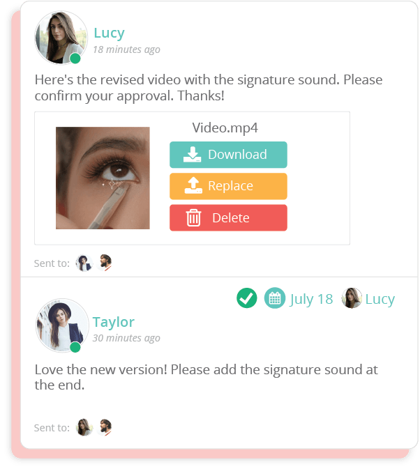 With Sharelov, feedback is streamlined per creative asset, which makes it easier for teammates to provide feedback, work on change requests and present updated versions faster. All feedback and approvals are logged for record.